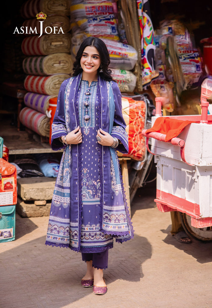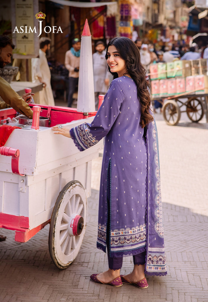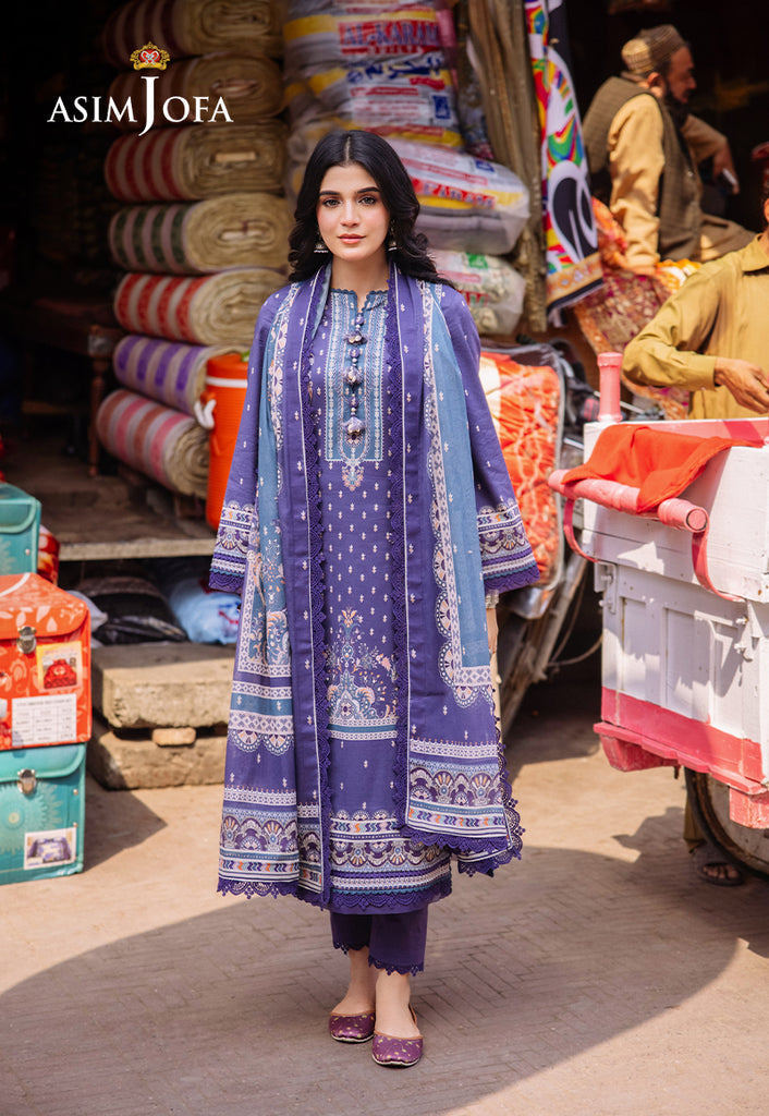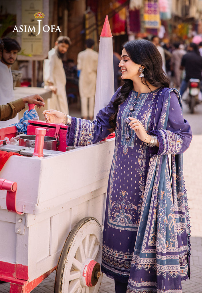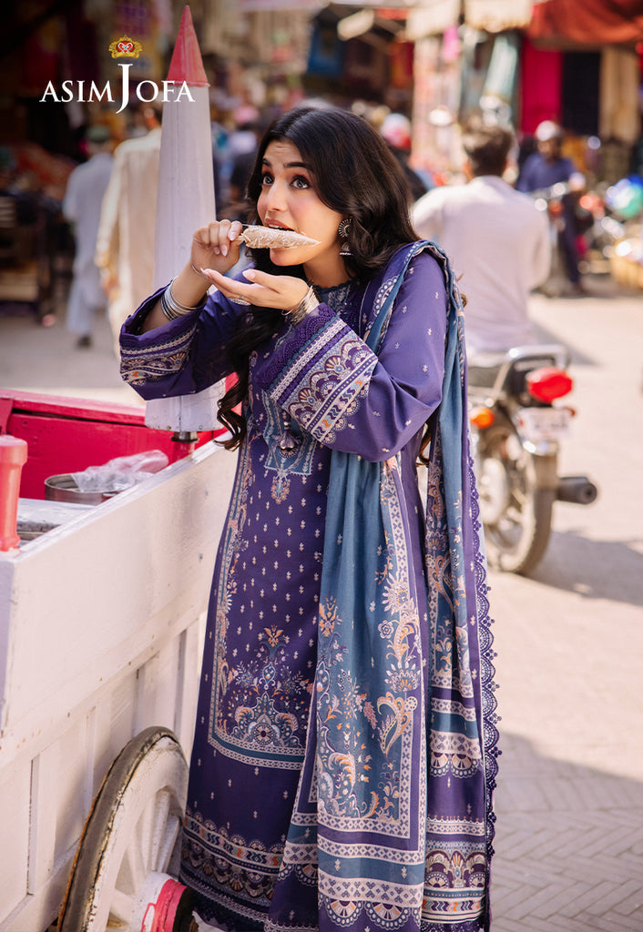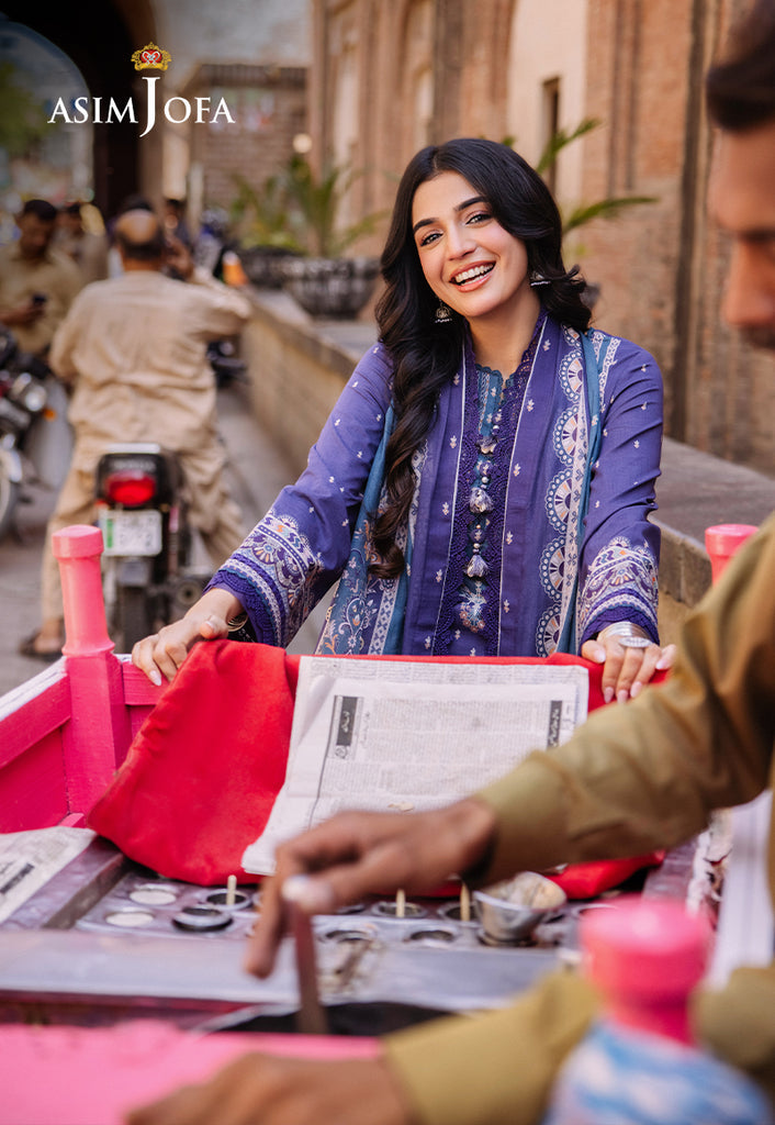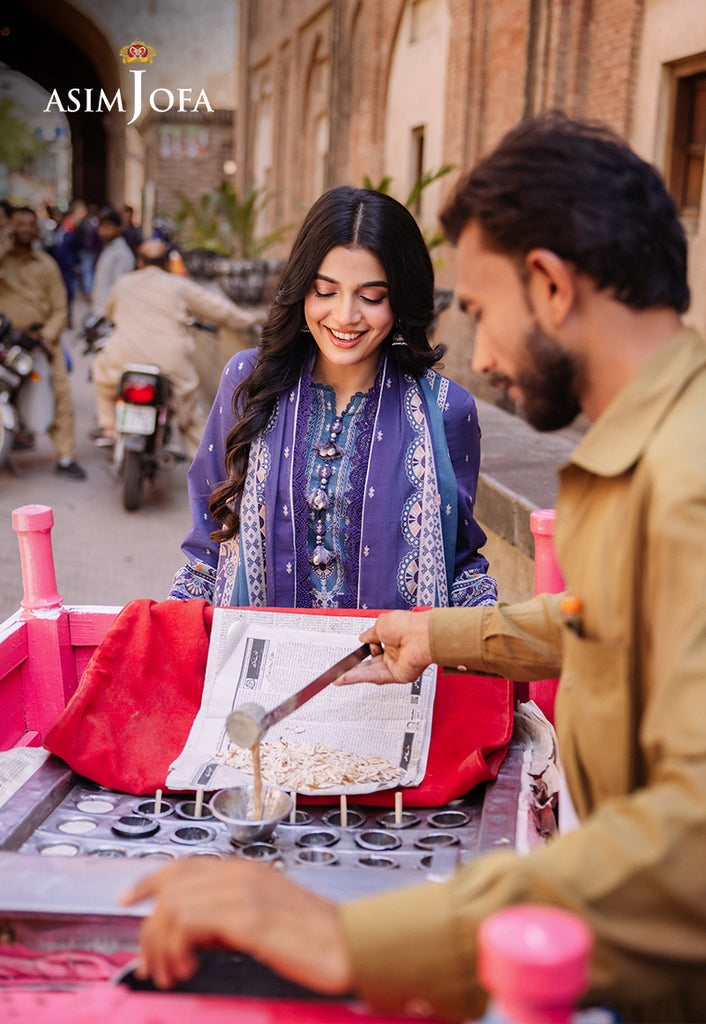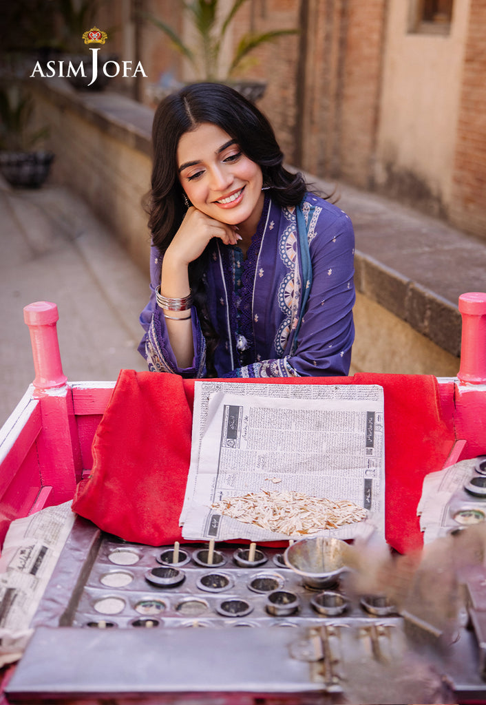 Revel in the splendor of Asim Jofa’s Basic Print Collection with this exquisite three-piece ensemble. The lawn shirt is a canvas of purplish blue is adorned with white and multicolored motifs that echo the lively spirits. The dupatta drapes elegantly capturing the essence of desi charm. This outfit is a celebration of everyday wear making fashion boundless and grace everything.