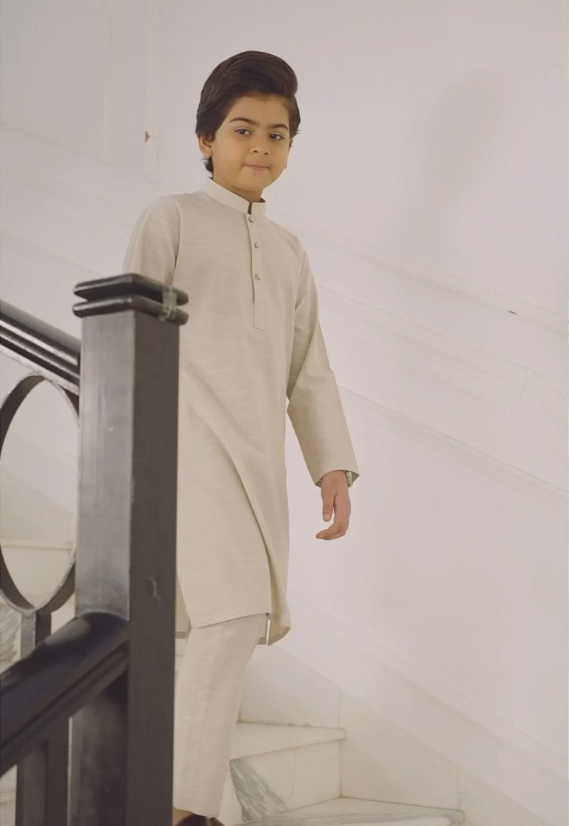 Bright and breezy, this off-white kurta trouser set is just right for sunny smiles and good vibes. With its soft cotton feel, it’s made for comfort-loving boys who like to look sharp while having fun!