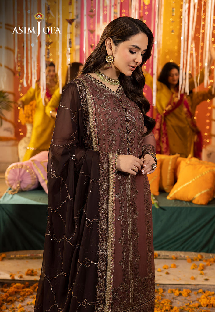 Discover Rustic Radiance with this dull salmon attire, perfectly matched with a dark brown dupatta. The two-toned mink zari adorned with light gold cupped sequins and warm brown threadwork infuses a sense of rustic charm. A bloom of elegance graces the embroidered center panel and side panels extending to the borders for daman, sleeves, and chaak. The dupatta, adorned with side borders adds the final touch to this refined ensemble.