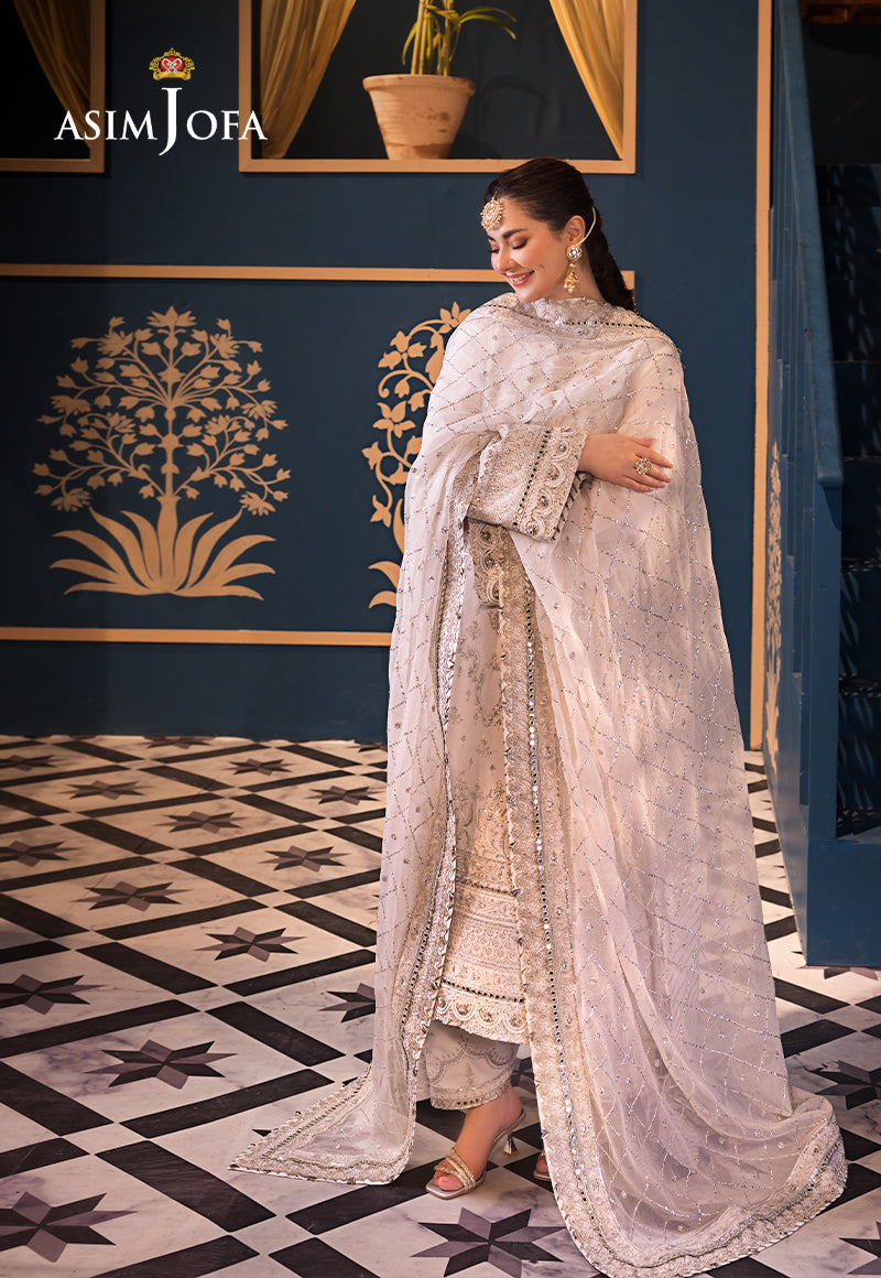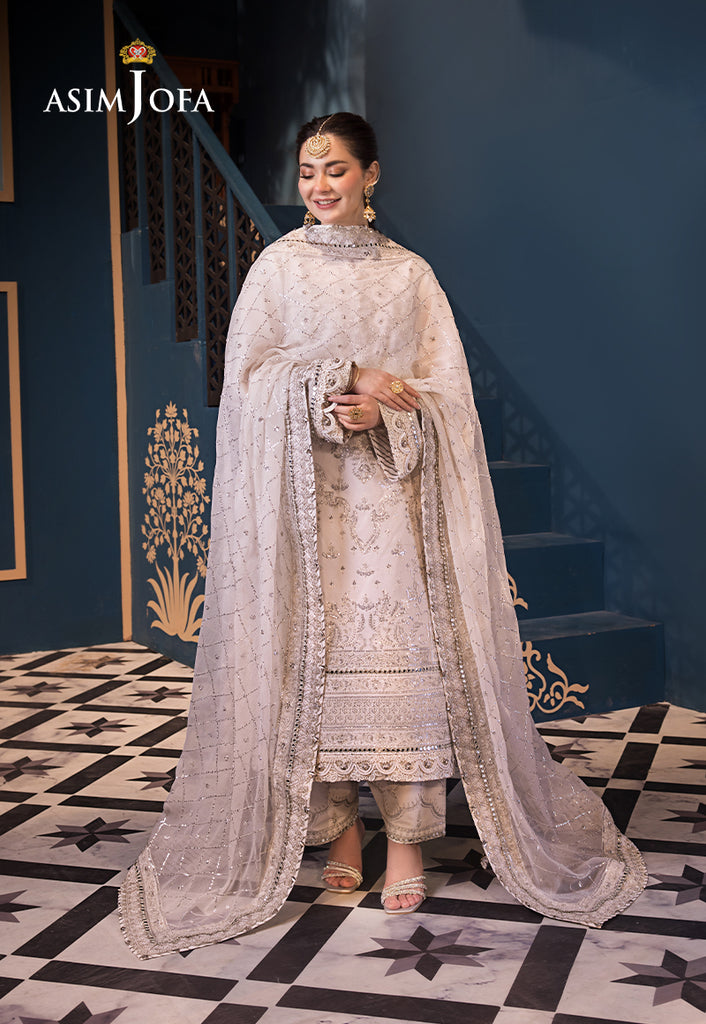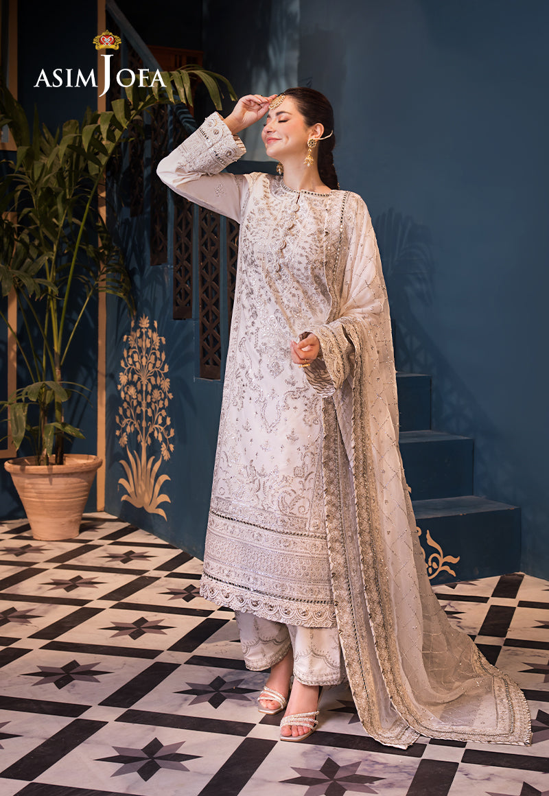 Step into the realm of dreams with this ivory ensemble adorned with the ethereal glow of silver 3mm sequins creating a classic vibe with antique silver zari and self-color threadwork. The ensemble is like a canvas of dreams evoking a visually pleasing impact. The intricately embroidered panels embody the enchanting energy while the neckline and back add a touch of whimsy. Complete your look with the beautifully embroidered dupatta and step into the enchanted dreamscape of timeless beauty and charm.