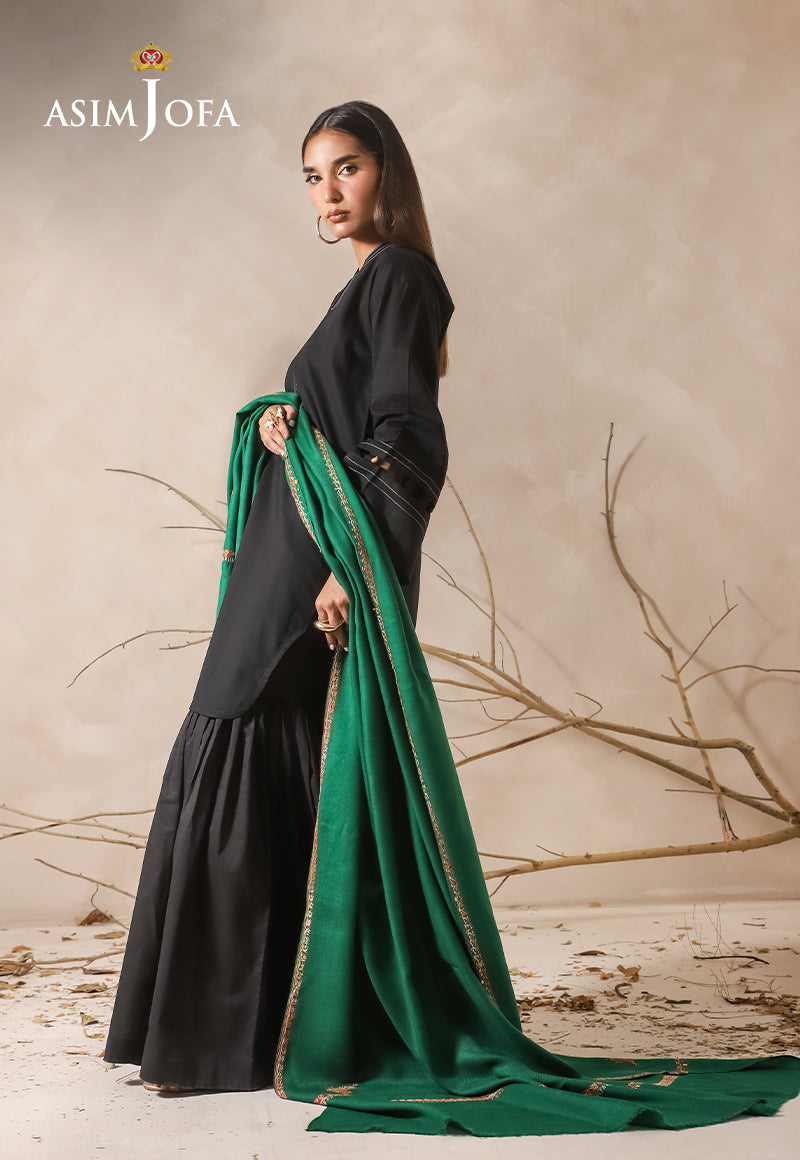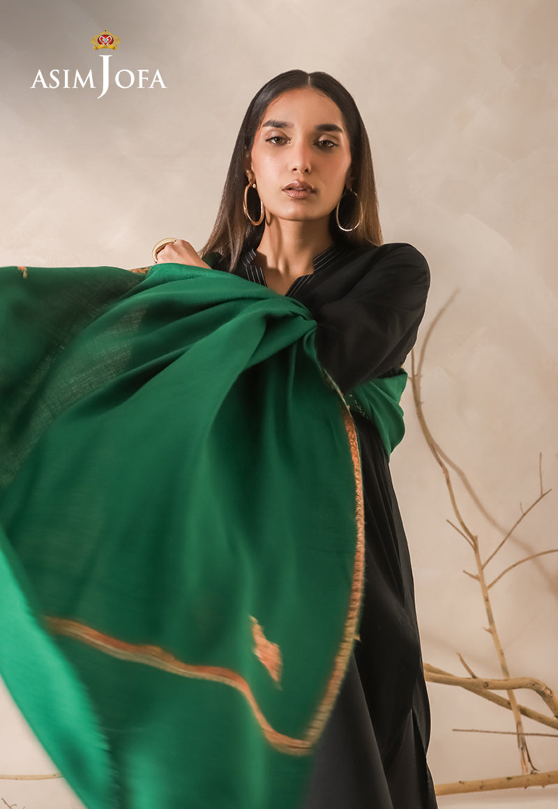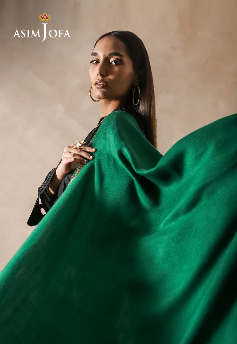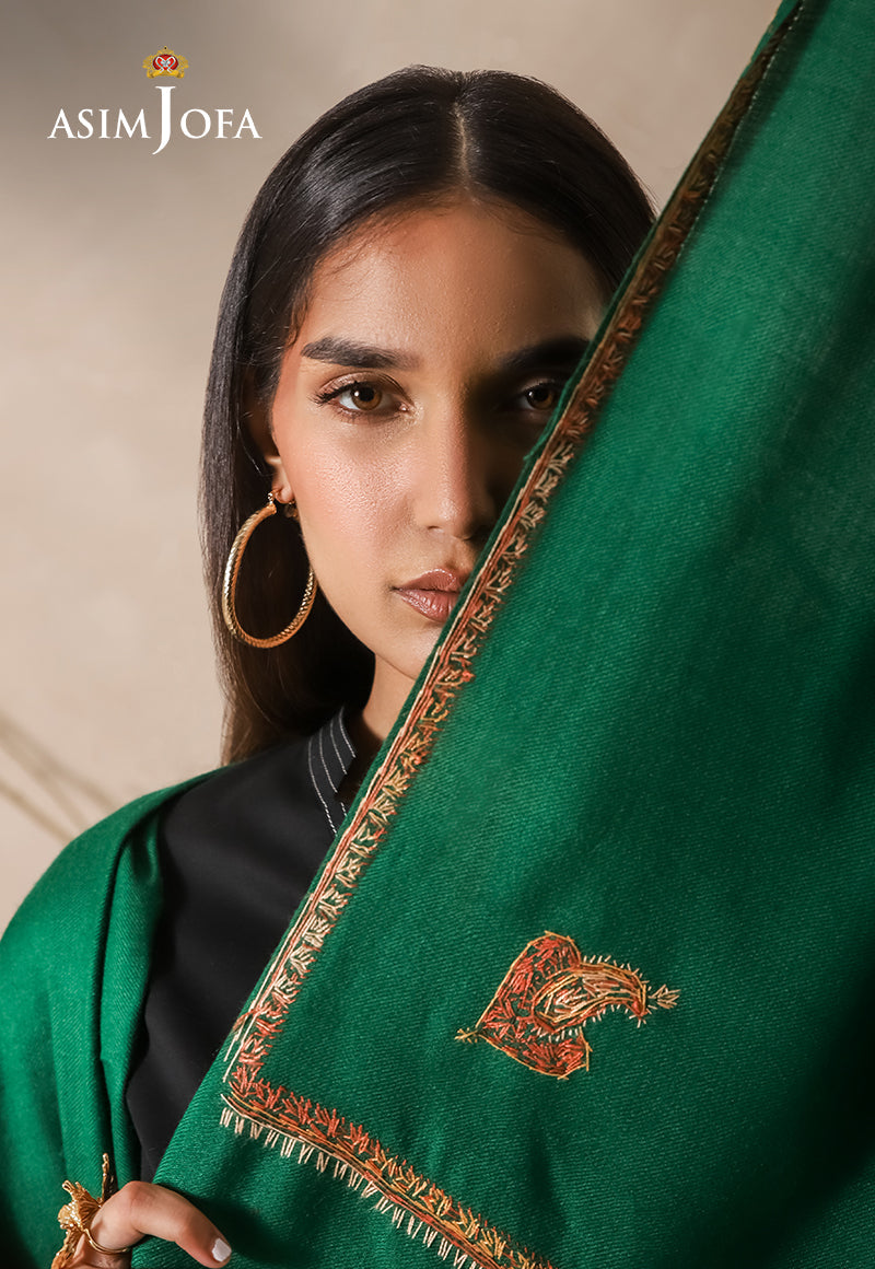This elegant green shawl in Kashmiri Kantha style features beautiful running patterns, offering an artisanal touch that celebrates the rich traditions with a touch of allure.