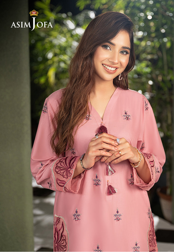 Radiate feminine charm with this embroidered pink tunic – a delightful ensemble that exudes graceful elegance.