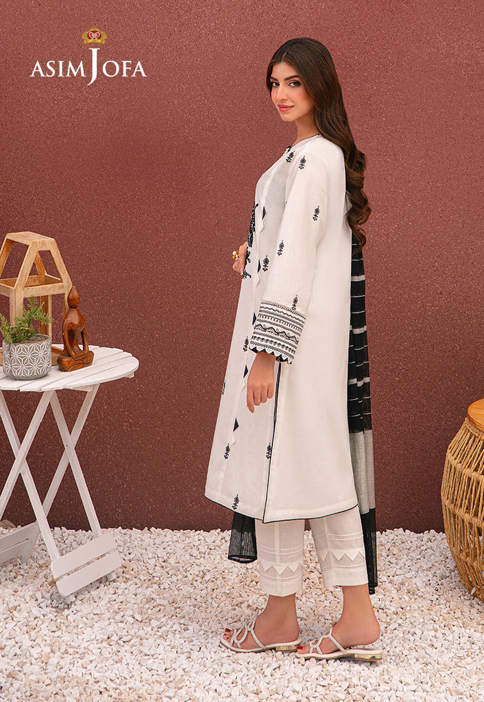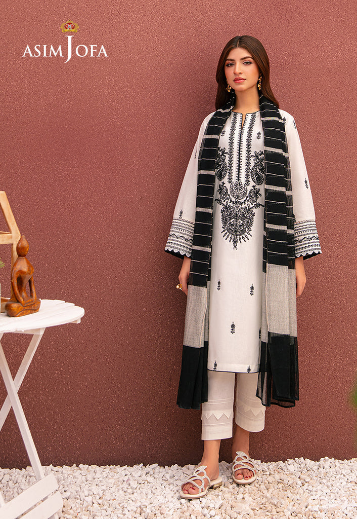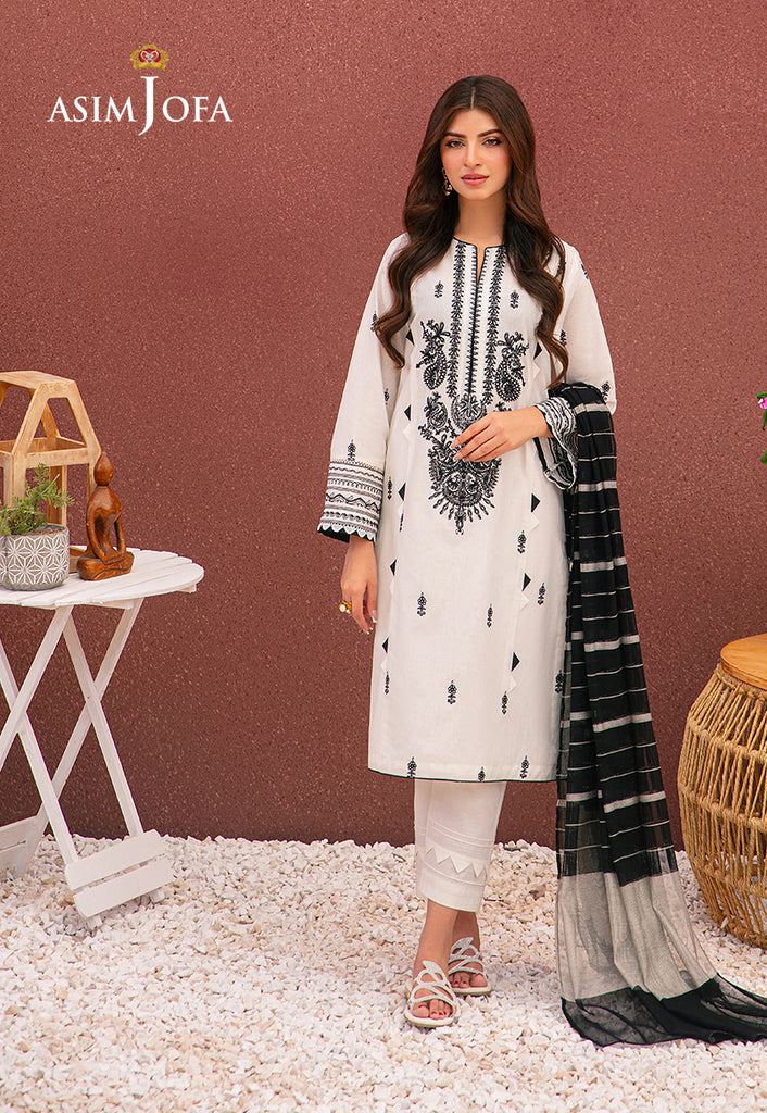 Embrace the epitome of this embroidered monochrome ensemble elevated with a black dupatta – a timeless trio that effortlessly fuses purity with dramatic elegance.