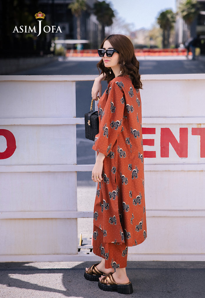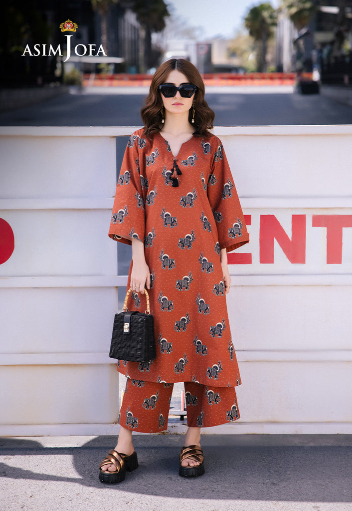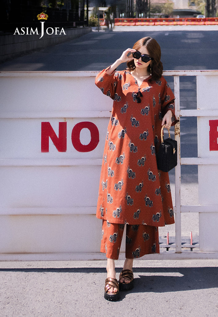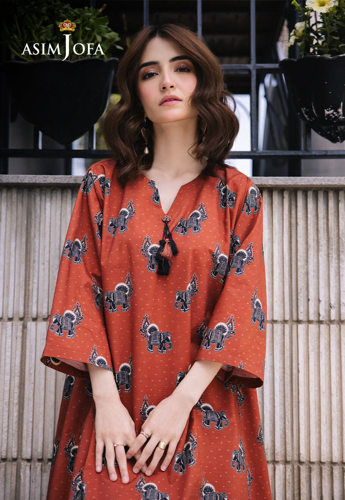 The long, loose-fitting shirt in a printed burnt-sienna is perfect for casual days while the captivating elephant motifs add a pop of modern charm with matching wide-leg trouser that can turn heads all around you.