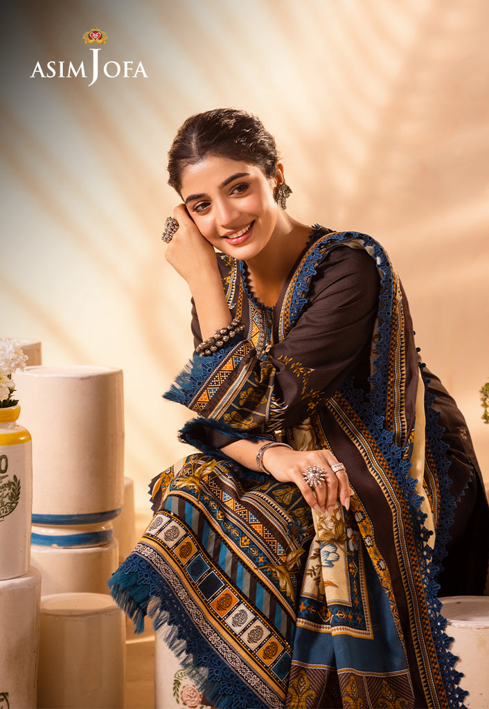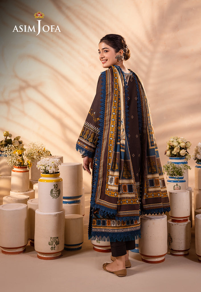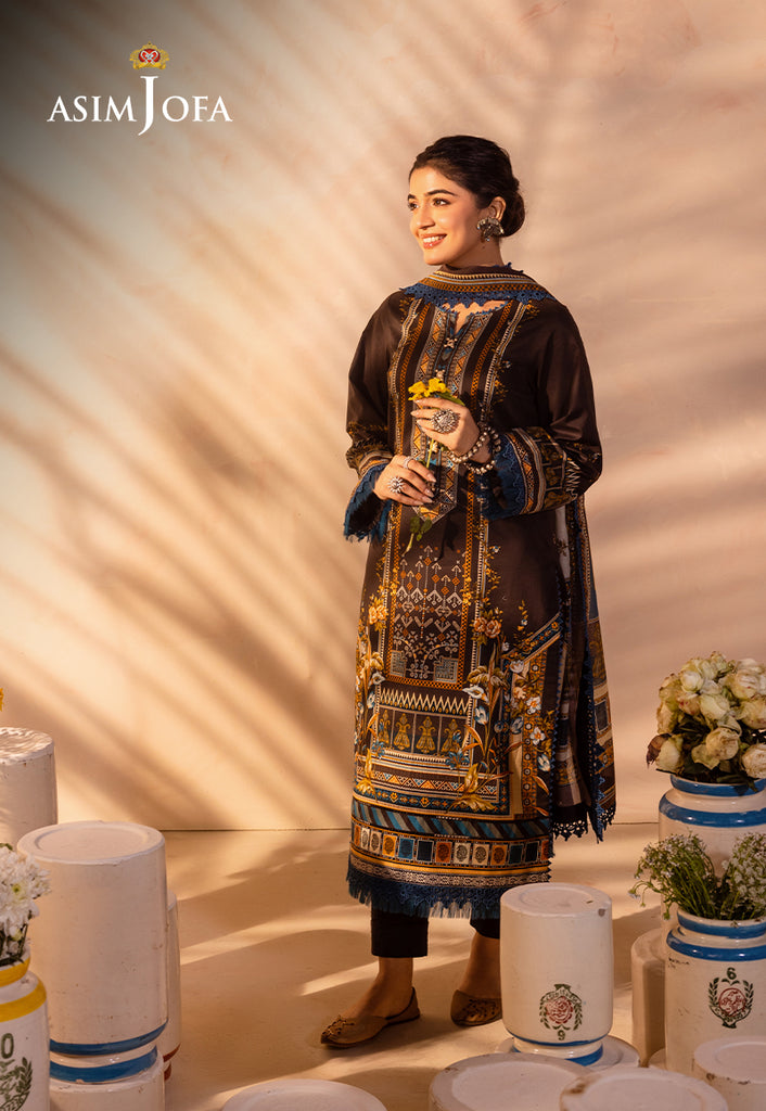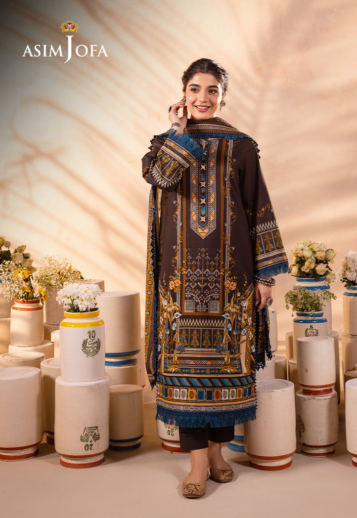 Embrace earthy sophistication with this brown outfit from "Asim Jofa Prints”. The printed shirt with multi-color contemporary motifs mirroring the dupatta exudes warmth and charm. Let the timeless appeal of brown redefine your summer wardrobe.